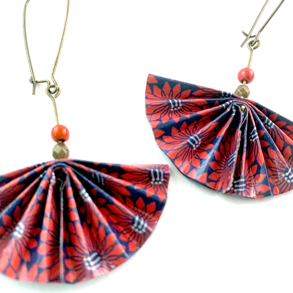 Boucles d’oreilles en origami, forme éventail, ultra tendance et légères.