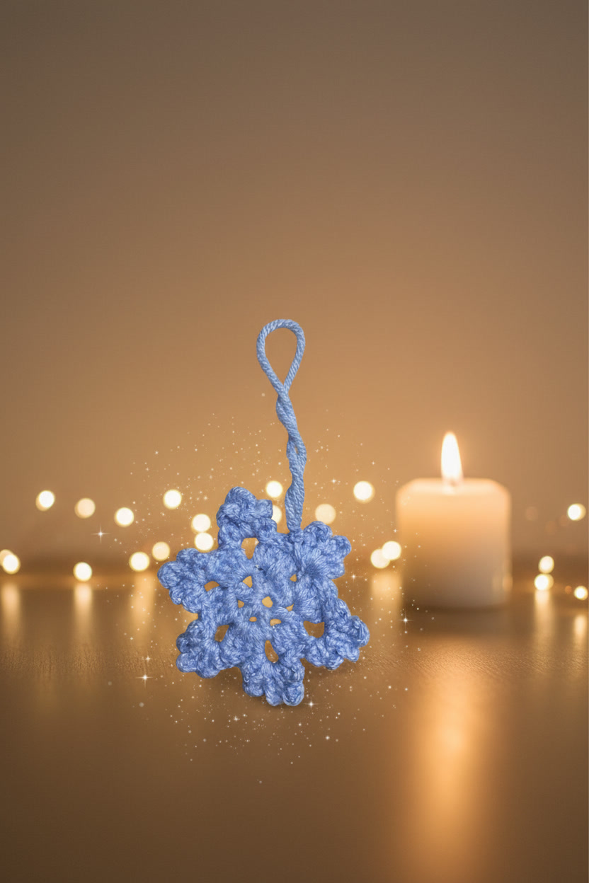 Ce flocon de neige au crochet est une petite suspension douce et lumineuse, réalisée entièrement à la main. Sa couleur bleu givré évoque immédiatement la magie de l’hiver. Ainsi, il apporte une touche féérique à votre décoration. Grâce à sa légèreté, vous pouvez l’accrocher facilement sur un sapin, une poignée, une branche décorative ou même dans une chambre.